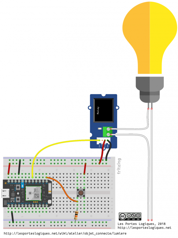 Ce montage permet de commander un relais pour allumer une lampe de chevet à distance, par l'intermédiaire d'une page web.
