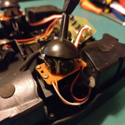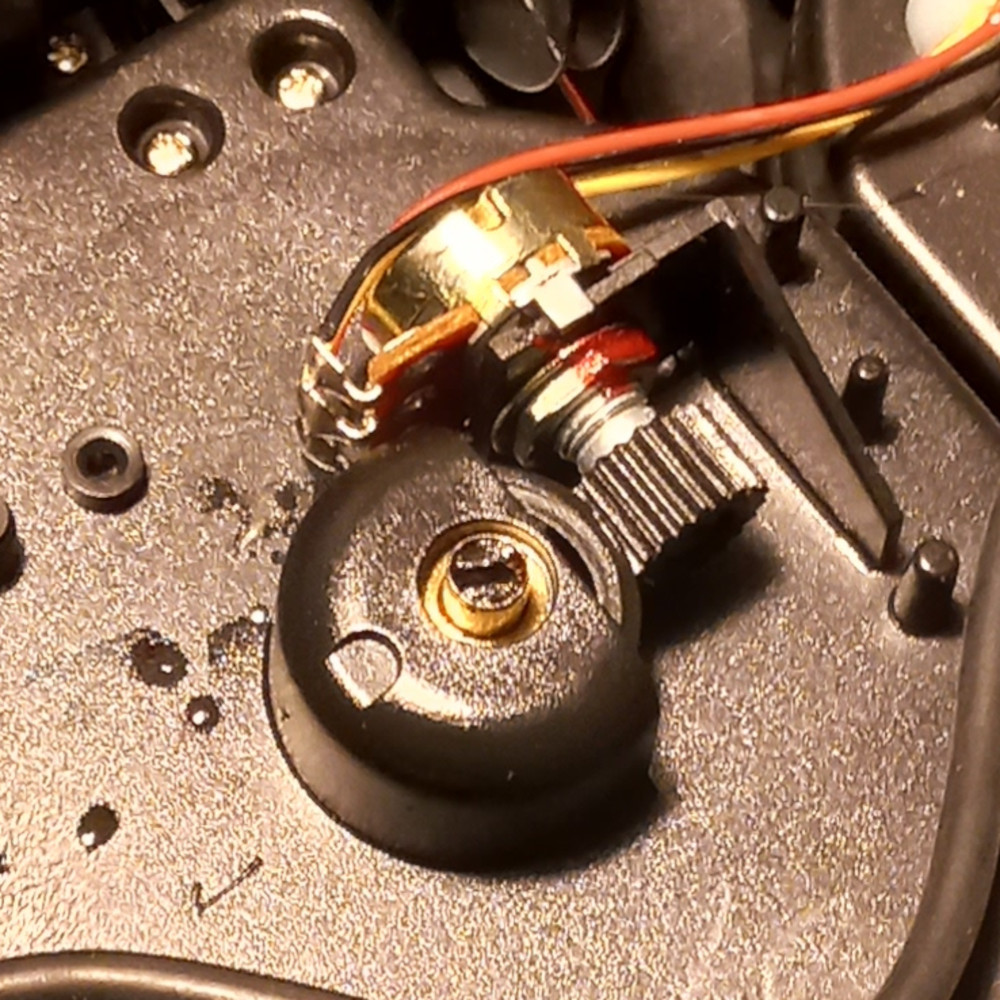 Avant de découvrir tout ça, je l'ai démonté pour vérifier que tout ça se passe bien au niveau des capteurs (et lire la version du pcb), à l'intérieur on trouve 2 doubles potentiometres pour XY, type joystick, assez classiques et 2 potentiometres qui mesurent l'élongation en Z avec un système de poulies. C'est quand même bien ingénieux tout ça!