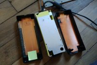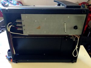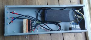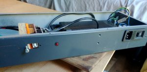 On utilise le boitier métallique d'origine pour y installer la carte arduino, son shield-cnc et l'alimentation de celle-ci. Ceci nous permet de relier la carcasse de la machine à la masse et de protéger l'électronique de la poussière. À voir si ça ne chauffe pas trop…