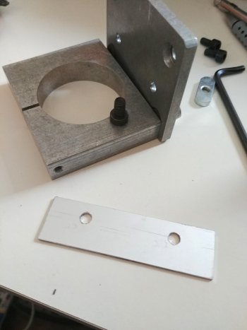 N'ayant pas les outils disponible pour installer le nouveau support il à fallu imprimer un anneau d'adaptation et découper une cale en aluminium