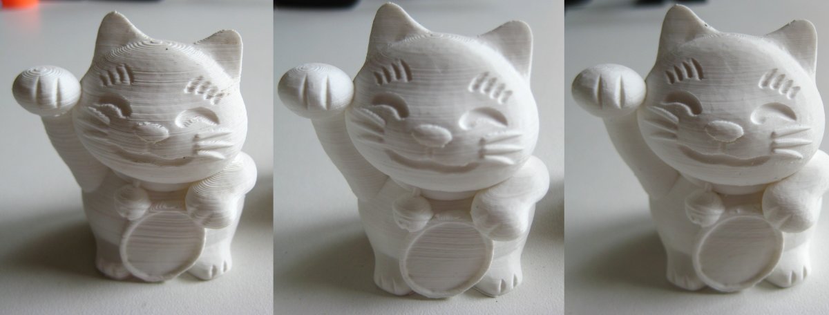De gauche à droite, des essais d'impression fine réalisés avec Cura 3.5.1
