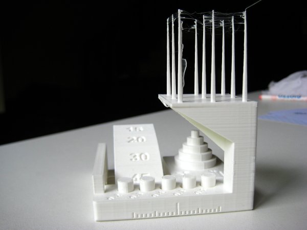 Protocole de test défini par Autodesk pour évaluer les caractéristiques d'une imprimante. Pour comparer avec d'autres résultats de tests il est important d'utiliser toujours le même type de filament, ce que l'on a pas fait! Mais cela permet tout de même de se rendre compte des contraintes à prendre en compte pour modéliser en 3D et des limites de l'imprimante.