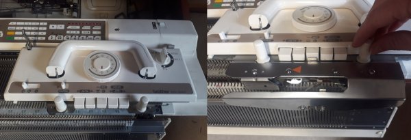 8. régler la tension du chariot K en fonction de la grosseur du fil et faire quelques rangs de jersey (conseil : 10-15 rangs)