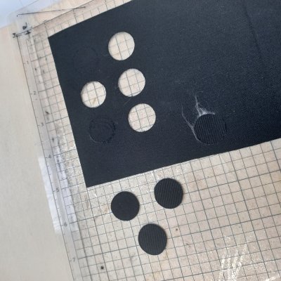 - Préparer un carré de sergé de 12cm de côté (TODO : c'est trop!)