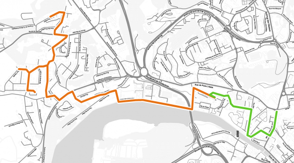 J'ai essayé sans succès de réaliser avec Static Map une carte vide avec les noms de rues pour superposer aux trajets, mais ça ne fonctionne pas, le cadrage de la carte se faisant en fonction des éléments placés (et du niveau de zoom), les deux cartes ne se superposent pas.