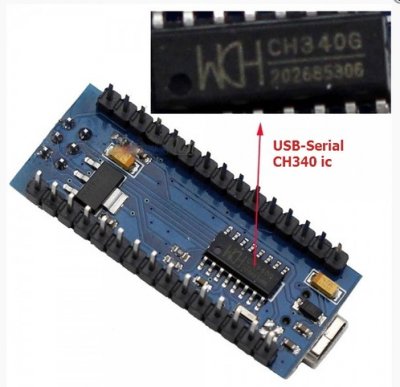 Selon le fabricant de la carte, différents composants peuvent être utilisés pour remplir cette fonction : FTDI FT232RL, WCH CH340G, etc.