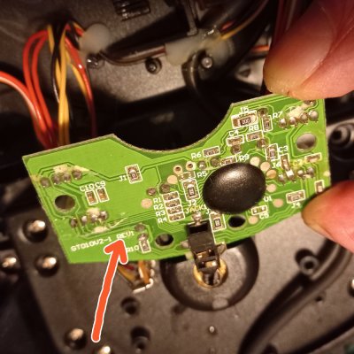 + il y a une soudure à refaire sur le circuit imprimé interne : sur le port micro-jack qui permet un interrupteur à pied