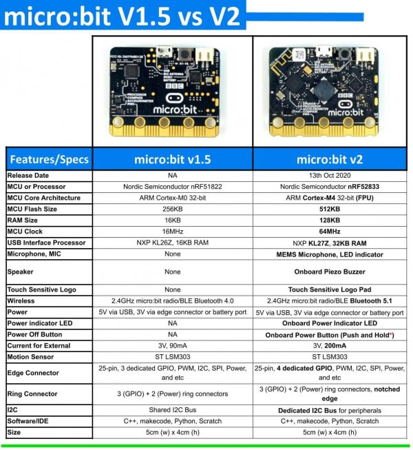 Caractéristiques détaillées en fonction de la version : https://tech.microbit.org/hardware/