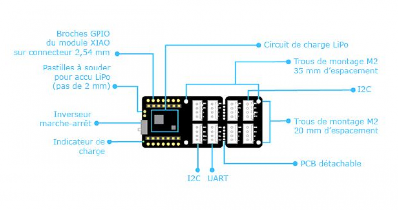 Afficher le texte sourceAnciennes révisionsLiens de retourExporter en PDFHaut de page Table des matières Seeeduino Xiao Brochage Xiao SAMD21 Extensions Grove shield pour Xiao Ressources Ceci est une ancienne révision du document ! Seeeduino Xiao Il existe plusieurs versions des cartes Xiao, embarquant des microcontrôleurs différents : Source : gotronic Brochage Xiao SAMD21 Extensions Grove shield pour Xiao Source : gotronic Ressources xiao : https://wiki.seeedstudio.com/Seeeduino-XIAO/ xiao grove shield : https://wiki.seeedstudio.com/Grove-Shield-for-Seeeduino-XIAO-embedded-battery-management-chip/ materiel/seeeduino_xiao.1653409800.txt.gz Dernière modification: 2022/05/24 18:30par emoc
