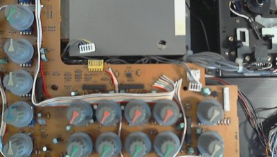 - Débrancher les différentes nappes en commençant par celles qui relient la face avant au circuit imprimé. La face avant ne doit plus avoir quoi que ce soit qui la relie au reste de l'appareil. Oui, c'est atroce…