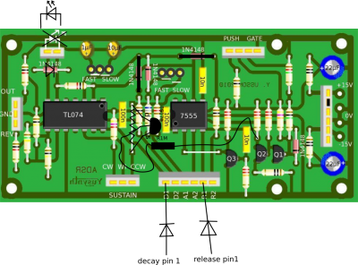 J'ai utilisé le fichier fournis par Yusynth et l'ai modifié pour adapter l'alimentation eurorack qui n'était pas sur le typon à l'époque. Il s'agit d'une version obsolète mais voici le fichier gimp dualadsr-typon-old.zip