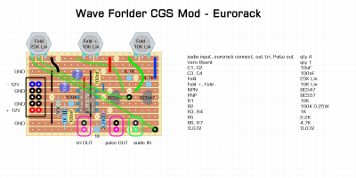 Inspiré du CGS simple wave folder créer par Ken Stone, ce module eurorack permet d'enrichir un signal audio simple par des harmoniques. L'idée est de faire un module simple à construire, économique en utilisant une plaque stripboard et quelques composants.