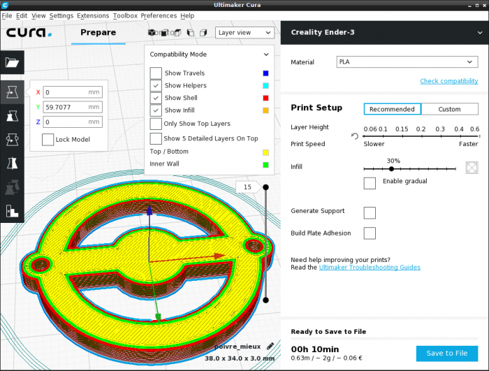 - découpage en tranches avec cura