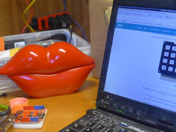 C'est un superbe téléphone sensuel en forme de bouche qui a servi à diffuser une suite d'entretiens sur le sujet des règles. Il a été utilisé comme borne d'écoute pour la journée/soirée “Bois mes règles” organisée par Gast! à Quimperia / La Baleine en mars 2018.
