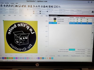 2. dans lightburn : créer un contour autour du texte ou motif à graver (cela permet une inversion de la surface gravée ou découpée)