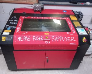 Pour chaque découpe il faut placer le laser à 18,85 mm de la surface du support, on utilise les boutons haut et bas à droite de la laser et une cale de 18,85 mm. Au 14/12/2023: Cette cale est à fabriquer.