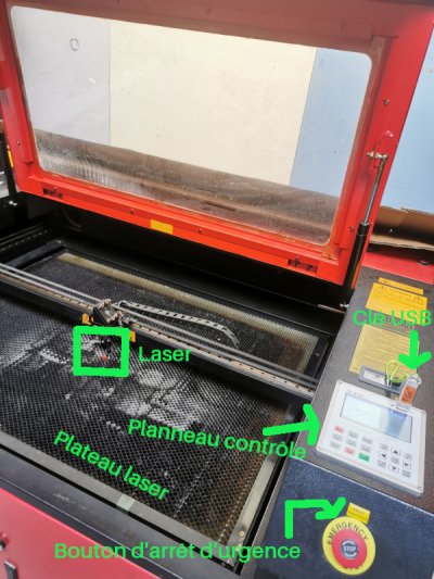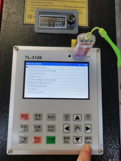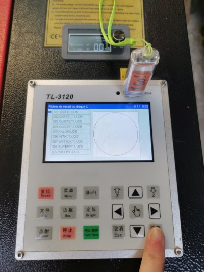 - transférer le fichier avec la clé UBS (tiroir matériel laser)
