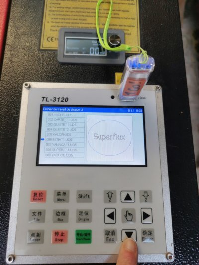 1. mettre son fichier .UD5 (export Lightburn - ordi LPL OP21) sur la clé USB dédiée à la laser (toutes les clés USB ne fonctionnent pas !