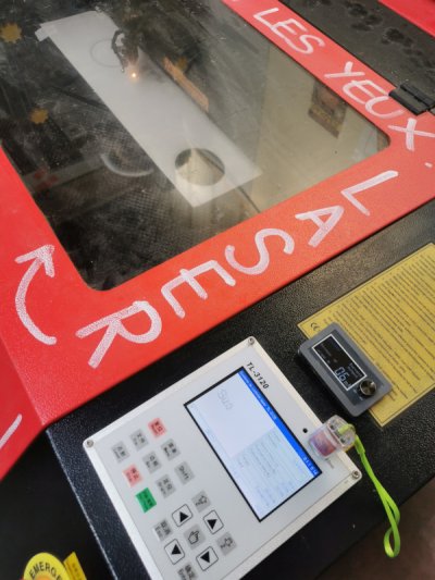 4. refermer le capot et lancer la gravure/découpe - se protéger les yeux !!!