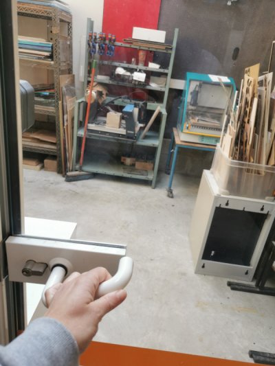 Attention à la poignée de la porte, elle ne s'ouvre que de l'extérieur !