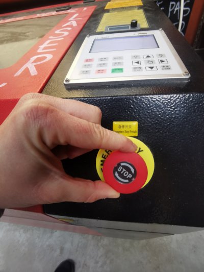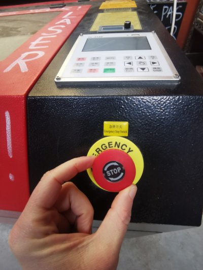 Appuyer sur le bouton “laser” pour vérifier le point de départ du laser positionné sur le matériau (cette étape n'est pas obligatoire)