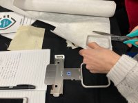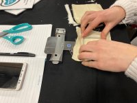 Pour le petit cadre : Détachez les 2 parties du cadre et insérer la feuille de feutrine et le textile p.23 du manuel positionnement du textile