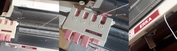 le fil de couleur principal s'est alors positionné sur les aiguilles des fontures principale et avant en zigzag