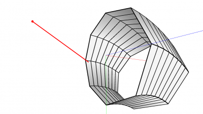 import queasycam.*; import com.badlogic.gdx.math.*; import nervoussystem.obj.*; import processing.pdf.*; static final Vector3 xAxis = new Vector3(1.0, 0.0, 0.0); static final Vector3 yAxis = new Vector3(0.0, 1.0, 0.0); static final Vector3 zAxis = new Vector3(0.0, 0.0, 1.0); QueasyCam cam; boolean wireframe = false; boolean record = false; ArrayList<Drawable> objects = new ArrayList(); public void setup() { fullScreen(P3D); //size(800, 600, P3D); cam = new QueasyCam(this, 1, 9999); cam.key_forward = 'z'; cam.key_left = 'q'; cam.key_backward = 's'; cam.key_right = 'd'; cam.key_up = 'e'; cam.key_down = 'a'; Pipe pipe = new Pipe( new Vector3(0, 0, 0), new Quaternion().setEulerAngles(10, 0, 40), 10, 32); objects.add(pipe); float size = 20; for (int i=0; i<8; i++) { pipe.changeSize(size); size += 10; pipe.addBend(90, 0.0, 45.0); } } public void draw() { background(255); lights(); strokeWeight(1); stroke(255, 0, 0); line(0, 0, 0, 100, 0, 0); stroke(0, 255, 0); line(0, 0, 0, 0, 100, 0); stroke(0, 0, 255); line(0, 0, 0, 0, 0, 100); if (wireframe) stroke(0); else noStroke(); strokeWeight(2); if (record) { beginRaw(PDF, "output.pdf"); noFill(); } for (Drawable o : objects) o.draw(); if (record) { record = false; endRaw(); } } void keyPressed() { if (key == 'w') wireframe = !wireframe; if (key == 'p') record = true; } public interface Drawable { public void draw(); public void update(); } public interface Chainable extends Drawable { public Vector3 getOutPos(); public Quaternion getOutOrientation(); } /***************************** ** class Pipe ** *****************************/ public class Pipe implements Drawable { private Vector3 pos; private Quaternion orientation; private float radius; private float nextRadius; private int faces; private ArrayList<Chainable> objects = new ArrayList(); private Vector3 currentPos; private Quaternion currentOrientation; public Pipe(Vector3 pos, Quaternion orientation, float radius, int faces) { this.pos = pos; this.orientation = orientation; this.radius = radius; this.nextRadius = radius; this.faces = faces; currentPos = this.pos.cpy(); currentOrientation = orientation.cpy(); } public void changeSize(float next) { this.nextRadius = next; } private void add(Chainable object) { objects.add(object); currentPos = object.getOutPos(); currentOrientation = object.getOutOrientation(); radius = nextRadius; } public void addTube(float len) { addTube(len, 0.0); } public void addTube(float len, float twist) { Tube tube = new Tube( currentPos, currentOrientation, len, radius, nextRadius, twist, 1, faces ); add(tube); } public void addBend(float angleBendDeg) { addBend(angleBendDeg, 0.0, 0.0); } public void addBend(float angleBendDeg, float angleRotDeg) { addBend(angleBendDeg, angleRotDeg, 0.0); } public void addBend(float angleBendDeg, float angleRotDeg, float twist) { int rings = 8; float radInt = 50; currentOrientation.mul(new Quaternion().setEulerAngles(0, angleRotDeg, 0)); Bend bend = new Bend( currentPos, currentOrientation, radius, nextRadius, radians(angleBendDeg), radInt, twist, rings, faces ); add(bend); } public void update() { for (Chainable o : objects) o.update(); } public void draw() { for (Chainable o : objects) { o.draw(); } Vector3 head = currentOrientation.transform(new Vector3(32, 0, 0)); head.add(currentPos); line(currentPos.x, currentPos.y, currentPos.z, head.x, head.y, head.z); } } /***************************** ** class Tube ** *****************************/ public class Tube implements Drawable, Chainable { private Vector3 pos; private Quaternion orientation; private float len; private float radiusIn; private float radiusOut; private float twist; private int rings; private int faces; private Vector3[] points; private Vector3 tmpVec = new Vector3(); private Vector3 outPos = new Vector3(); private Quaternion outOrientation = new Quaternion(); public Tube( Vector3 pos, Quaternion orientation, float len, float radiusIn, float radiusOut, float twist, // In degrees int rings, int faces ) { this.pos = pos.cpy(); this.orientation = orientation.cpy(); this.len = len; this.radiusIn = radiusIn; this.radiusOut = radiusOut; this.twist = radians(twist); this.rings = rings; this.faces = faces; points = new Vector3[faces * (rings+1)]; update(); } Vector3 getOutPos() { return outPos.cpy(); } Quaternion getOutOrientation() { return outOrientation.cpy(); } public void update() { Quaternion rot = new Quaternion(); int pointIdx = 0; for (int s=0; s<rings+1; s++) { float angle = s * twist/rings; for (int i=0; i<faces; i++) { tmpVec.set(s * len/rings, map(s, 0, rings, radiusIn, radiusOut), 0.0); rot.setFromAxisRad(xAxis, angle).mulLeft(orientation); rot.transform(tmpVec); points[pointIdx++] = tmpVec.cpy().add(pos); angle += TWO_PI / faces; } } outOrientation.set(orientation); outOrientation.mul(new Quaternion().setFromAxisRad(xAxis, twist)); outPos.set(len, 0.0, 0.0); outOrientation.transform(outPos); outPos.add(pos); } public void draw() { for (int s=0; s<rings; s++) { beginShape(QUAD_STRIP); for (int i=0; i<faces+1; i++) { tmpVec.set(points[s * faces + i%faces]); vertex(tmpVec.x, tmpVec.y, tmpVec.z); tmpVec.set(points[(s+1) * faces + i%faces]); vertex(tmpVec.x, tmpVec.y, tmpVec.z); } endShape(); } } } /***************************** ** class Bend ** *****************************/ public class Bend implements Drawable, Chainable { private Vector3 pos; private Quaternion orientation; private float radiusIn; private float radiusOut; private float bendAngle; private float radInt; private float twist; private int rings; private int faces; private Vector3[] points; private Vector3 tmpVec = new Vector3(); private Vector3 outPos = new Vector3(); private Quaternion outOrientation = new Quaternion(); public Bend( Vector3 pos, Quaternion orientation, float radiusIn, float radiusOut, float bendAngle, // In radians float radInt, // Internal radius float twist, int rings, int faces ) { this.pos = pos.cpy(); this.orientation = orientation.cpy(); this.radiusIn = radiusIn; this.radiusOut =