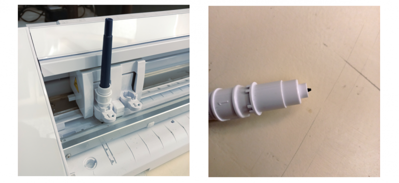 Placement du feutre dans le support : il y a plusieurs supports à utiliser selon le diamètre du feutre, la pointe feutre ne doit pas trop sortir, en vissant on serre le feutre.