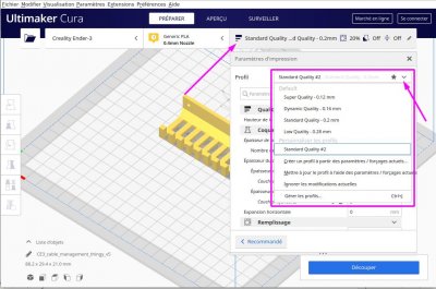 Réglages particuliers de Cura