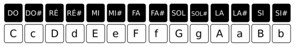 Ecriture des notes : C (majuscule) représente un DO , c (minuscule), un DO# (1/2 ton au dessus)