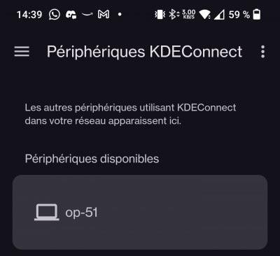 4/12/2025 : À l'exception d'un ou deux logiciels, tout est installé et préconfiguré. Il faut penser à changer le nom de l'appareil dans GSConnect en ouvrant ses paramètres via le menu en haut à droite (captures ci-dessous). Logique OS 0.1 est actuellement en cours de déploiement sur les ordinateurs portables commençant par OP52.