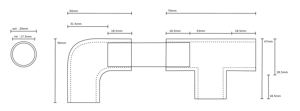 Les pièces de ce projet sont compatibles avec les coudes et pièces en té existantes. Mais elles sont pleines, donc on ne peut plus s'en servir comme gaine! Finalement non, les pièces ne sont pas compatibles mais s'articulent autour d'un cube de 20mm.