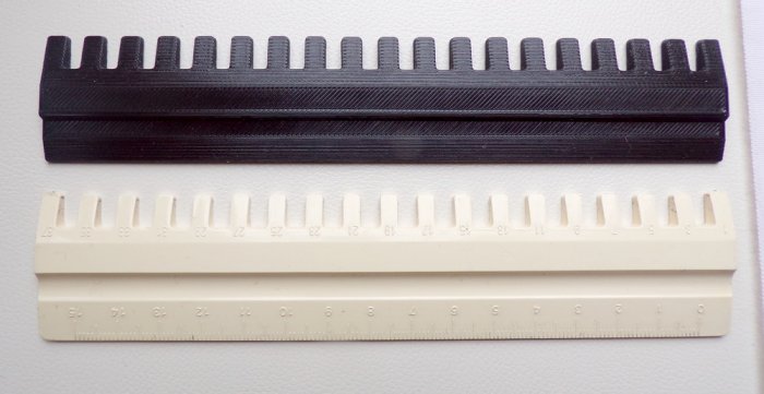 Le poussoir d'aiguilles (needle pusher) est un accessoire pour la machine à tricoter Brother KH940. Celui-ci a été refait d'après les dimensions d'un modèle original.