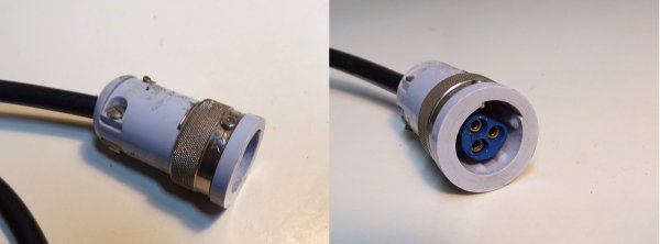 On remet temporairement un câble au connecteur chelou non-identifié de la prise secteur, pour tester l'enceinte. Il faudra plutôt choisir un câble électrique de section adaptée : 2.5 mm2.
