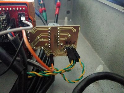 De droite à gauche les 2 premiers essais en réglant le Z0 à la louche et dernier avec l'auto nivelage. Le résultat est parfait même avec des pistes de 0,25mm et une pointe javelot 90° 0,3mm