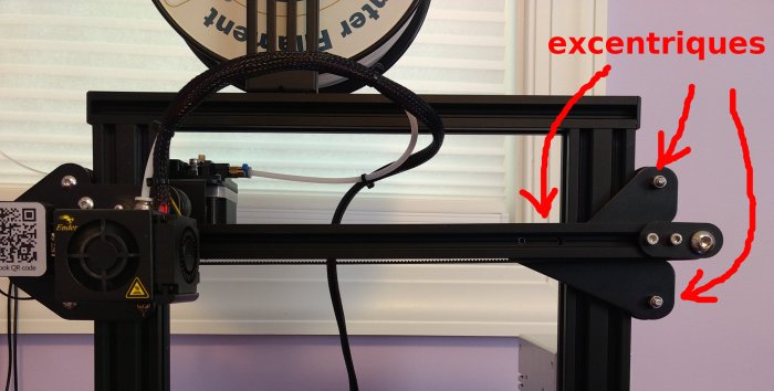 C'est résolu en réglant les excentriques (roues qui s'appuyent sur le montant Z à l'opposé du moteur). (merci pascal_lb