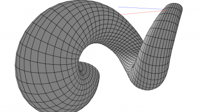 import queasycam.*; import com.badlogic.gdx.math.*; import nervoussystem.obj.*; import processing.pdf.*; static final Vector3 xAxis = new Vector3(1.0, 0.0, 0.0); static final Vector3 yAxis = new Vector3(0.0, 1.0, 0.0); static final Vector3 zAxis = new Vector3(0.0, 0.0, 1.0); QueasyCam cam; boolean wireframe = false; boolean record = false; ArrayList<Drawable> objects = new ArrayList(); public void setup() { fullScreen(P3D); //size(800, 600, P3D); cam = new QueasyCam(this, 1, 9999); cam.key_forward = 'z'; cam.key_left = 'q'; cam.key_backward = 's'; cam.key_right = 'd'; cam.key_up = 'e'; cam.key_down = 'a'; Pipe pipe = new Pipe( new Vector3(0, 0, 0), new Quaternion().setEulerAngles(10, 0, 40), 10, 32); objects.add(pipe); float size = 20; for (int i=0; i<8; i++) { pipe.changeSize(size); size += 10; pipe.addBend(90, 0.0, 45.0); } } public void draw() { background(255); lights(); strokeWeight(1); stroke(255, 0, 0); line(0, 0, 0, 100, 0, 0); stroke(0, 255, 0); line(0, 0, 0, 0, 100, 0); stroke(0, 0, 255); line(0, 0, 0, 0, 0, 100); if (wireframe) stroke(0); else noStroke(); strokeWeight(2); if (record) { beginRaw(PDF, "output.pdf"); noFill(); } for (Drawable o : objects) o.draw(); if (record) { record = false; endRaw(); } } void keyPressed() { if (key == 'w') wireframe = !wireframe; if (key == 'p') record = true; } public interface Drawable { public void draw(); public void update(); } public interface Chainable extends Drawable { public Vector3 getOutPos(); public Quaternion getOutOrientation(); } /***************************** ** class Pipe ** *****************************/ public class Pipe implements Drawable { private Vector3 pos; private Quaternion orientation; private float radius; private float nextRadius; private int faces; private ArrayList<Chainable> objects = new ArrayList(); private Vector3 currentPos; private Quaternion currentOrientation; public Pipe(Vector3 pos, Quaternion orientation, float radius, int faces) { this.pos = pos; this.orientation = orientation; this.radius = radius; this.nextRadius = radius; this.faces = faces; currentPos = this.pos.cpy(); currentOrientation = orientation.cpy(); } public void changeSize(float next) { this.nextRadius = next; } private void add(Chainable object) { objects.add(object); currentPos = object.getOutPos(); currentOrientation = object.getOutOrientation(); radius = nextRadius; } public void addTube(float len) { addTube(len, 0.0); } public void addTube(float len, float twist) { Tube tube = new Tube( currentPos, currentOrientation, len, radius, nextRadius, twist, 1, faces ); add(tube); } public void addBend(float angleBendDeg) { addBend(angleBendDeg, 0.0, 0.0); } public void addBend(float angleBendDeg, float angleRotDeg) { addBend(angleBendDeg, angleRotDeg, 0.0); } public void addBend(float angleBendDeg, float angleRotDeg, float twist) { int rings = 8; float radInt = 50; currentOrientation.mul(new Quaternion().setEulerAngles(0, angleRotDeg, 0)); Bend bend = new Bend( currentPos, currentOrientation, radius, nextRadius, radians(angleBendDeg), radInt, twist, rings, faces ); add(bend); } public void update() { for (Chainable o : objects) o.update(); } public void draw() { for (Chainable o : objects) { o.draw(); } Vector3 head = currentOrientation.transform(new Vector3(32, 0, 0)); head.add(currentPos); line(currentPos.x, currentPos.y, currentPos.z, head.x, head.y, head.z); } } /***************************** ** class Tube ** *****************************/ public class Tube implements Drawable, Chainable { private Vector3 pos; private Quaternion orientation; private float len; private float radiusIn; private float radiusOut; private float twist; private int rings; private int faces; private Vector3[] points; private Vector3 tmpVec = new Vector3(); private Vector3 outPos = new Vector3(); private Quaternion outOrientation = new Quaternion(); public Tube( Vector3 pos, Quaternion orientation, float len, float radiusIn, float radiusOut, float twist, // In degrees int rings, int faces ) { this.pos = pos.cpy(); this.orientation = orientation.cpy(); this.len = len; this.radiusIn = radiusIn; this.radiusOut = radiusOut; this.twist = radians(twist); this.rings = rings; this.faces = faces; points = new Vector3[faces * (rings+1)]; update(); } Vector3 getOutPos() { return outPos.cpy(); } Quaternion getOutOrientation() { return outOrientation.cpy(); } public void update() { Quaternion rot = new Quaternion(); int pointIdx = 0; for (int s=0; s<rings+1; s++) { float angle = s * twist/rings; for (int i=0; i<faces; i++) { tmpVec.set(s * len/rings, map(s, 0, rings, radiusIn, radiusOut), 0.0); rot.setFromAxisRad(xAxis, angle).mulLeft(orientation); rot.transform(tmpVec); points[pointIdx++] = tmpVec.cpy().add(pos); angle += TWO_PI / faces; } } outOrientation.set(orientation); outOrientation.mul(new Quaternion().setFromAxisRad(xAxis, twist)); outPos.set(len, 0.0, 0.0); outOrientation.transform(outPos); outPos.add(pos); } public void draw() { for (int s=0; s<rings; s++) { beginShape(QUAD_STRIP); for (int i=0; i<faces+1; i++) { tmpVec.set(points[s * faces + i%faces]); vertex(tmpVec.x, tmpVec.y, tmpVec.z); tmpVec.set(points[(s+1) * faces + i%faces]); vertex(tmpVec.x, tmpVec.y, tmpVec.z); } endShape(); } } } /***************************** ** class Bend ** *****************************/ public class Bend implements Drawable, Chainable { private Vector3 pos; private Quaternion orientation; private float radiusIn; private float radiusOut; private float bendAngle; private float radInt; private float twist; private int rings; private int faces; private Vector3[] points; private Vector3 tmpVec = new Vector3(); private Vector3 outPos = new Vector3(); private Quaternion outOrientation = new Quaternion(); public Bend( Vector3 pos, Quaternion orientation, float radiusIn, float radiusOut, float bendAngle, // In radians float radInt, // Internal radius float twist, int rings, int faces ) { this.pos = pos.cpy(); this.orientation = orientation.cpy(); this.radiusIn = radiusIn; this.radiusOut =