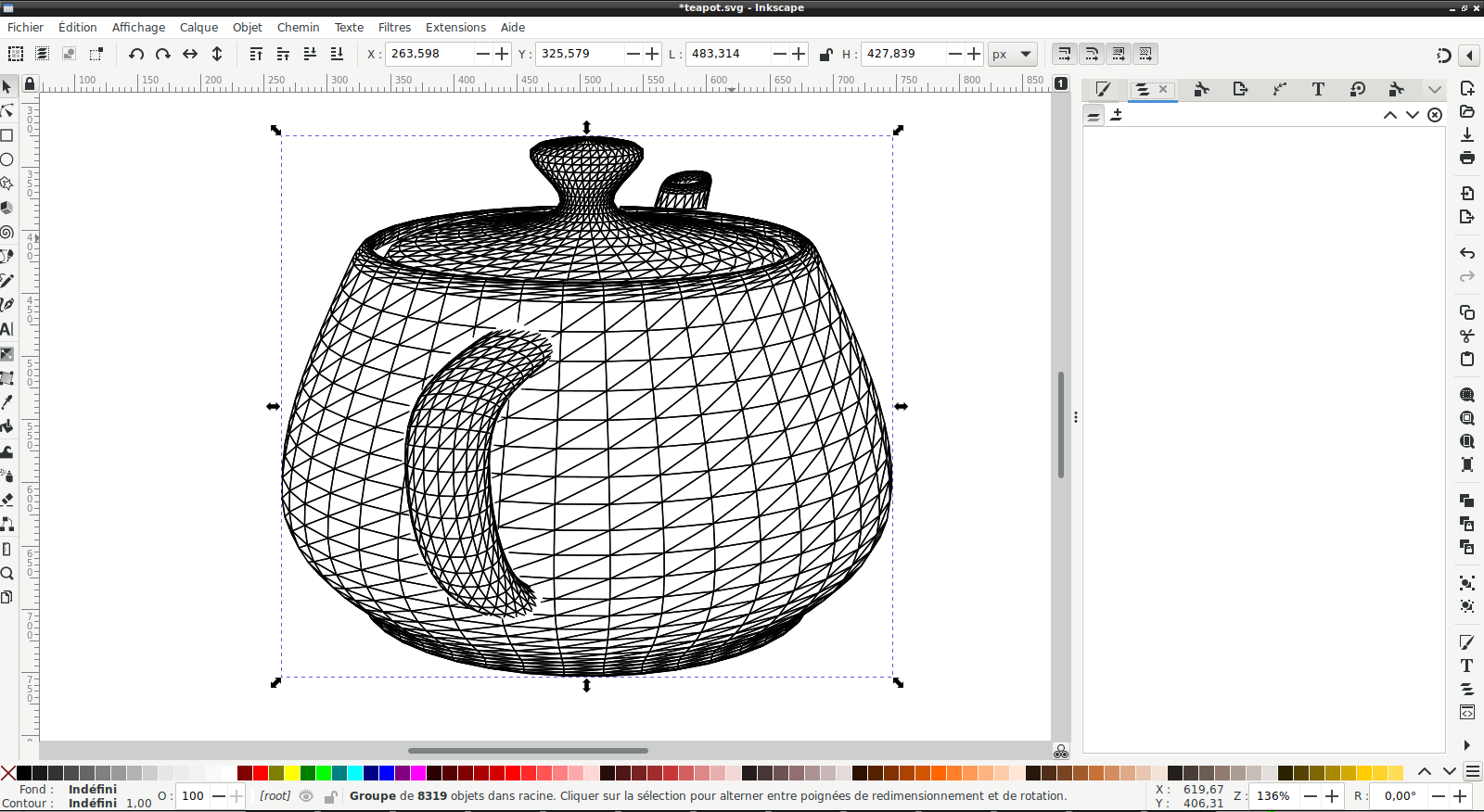 La commande est lancée depuis le répertoire courant dans lequel se trouve le fichier teapot.obj, les fichiers résultants (teapot.png et teapot.svg) sont créés dans le répertoire courant.