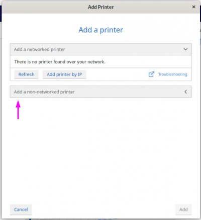 - Lors de l'installation choisir Add non-networked printer