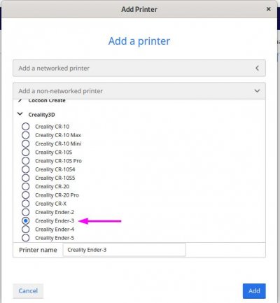 - Puis sélectionner Crealty3D > Crealty Ender 3